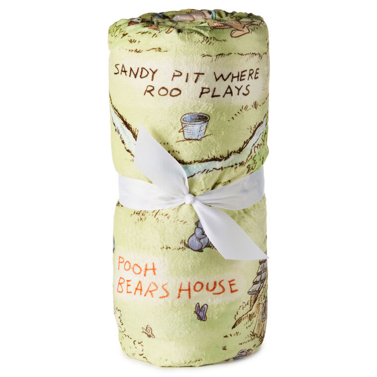 Snuggle down into cozy charm and celebrate 100 years of Winnie the Pooh with this soft fleece blanket. Featuring a map of the Hundred Acre Wood based on the stories and illustrations of A.A. Milne and E.H. Shepard, the Disney blanket showcases Christopher Robin, Pooh, Piglet, Eeyore, Owl, Rabbit, Kanga, and Roo along with captions marking their homes and favourite gathering spots. Perfect for adding warmth and a touch of nostalgia to your living room, bedroom, or nursery, this blanket is ideal for snuggling during story time, movie nights, or chilly evenings. Bring the magic of Pooh’s adventures into your home with this cuddly keepsake.